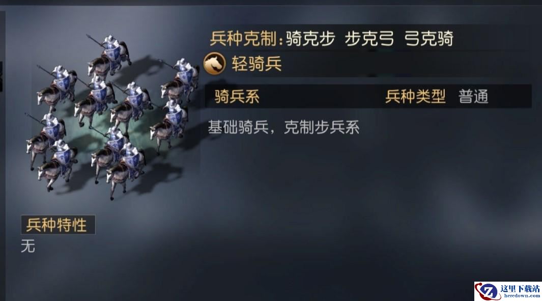 1、【轻骑兵】,属于普通的兵种,没有特性。
