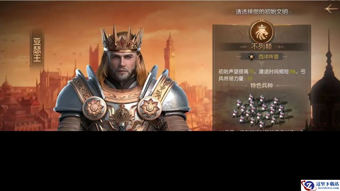 在冷兵器时代,不列颠凭着单一兵种的领先,称霸欧陆百年。不列颠长弓手所使用的长弓是当时闻名欧洲的弓,有效射程为230米;不列颠长弓手可以轻易刺穿一般步兵的铠甲,就连当时重装步兵和重骑兵的装甲也难以承受不列颠长弓强大的穿透力。长弓射手是大不列颠驰骋战场的依靠,也是其军事力量的核心,相信能成为玩家的核心战斗力。