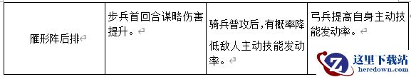 负面状态基本上是谋略输出,物理方面的能力可以直接舍弃,对于DEBUFF流来说,提升主动技能发动率、降低敌人的速度和伤害以及先攻等效果是比较实用的,鉴于雁形阵的前排弓兵提高的是敌人所受到的物伤,在这个思路中是无效属性,因此在阵型上推荐选择长蛇阵或者锋矢阵。