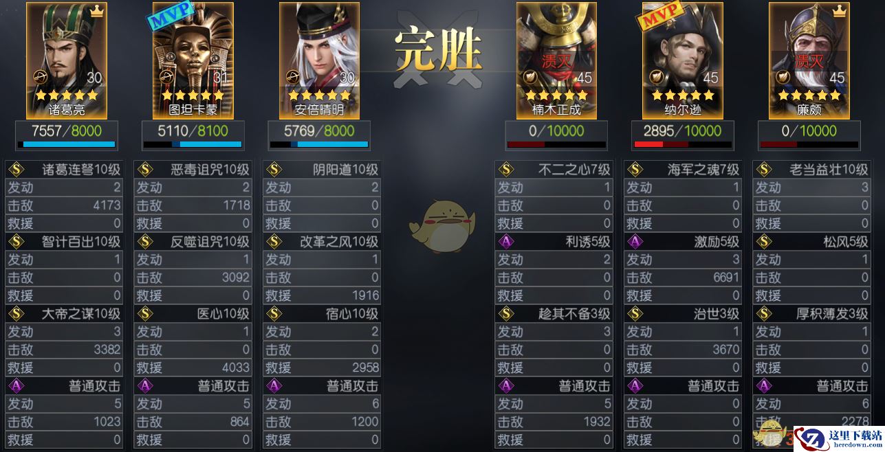 辅助类:改革之风、医心、浮叶、宿心(需要配合增伤)、劫富济贫、上主的启示(攻击后附带谋略伤害)、智计百出(跳过准备回合)等。