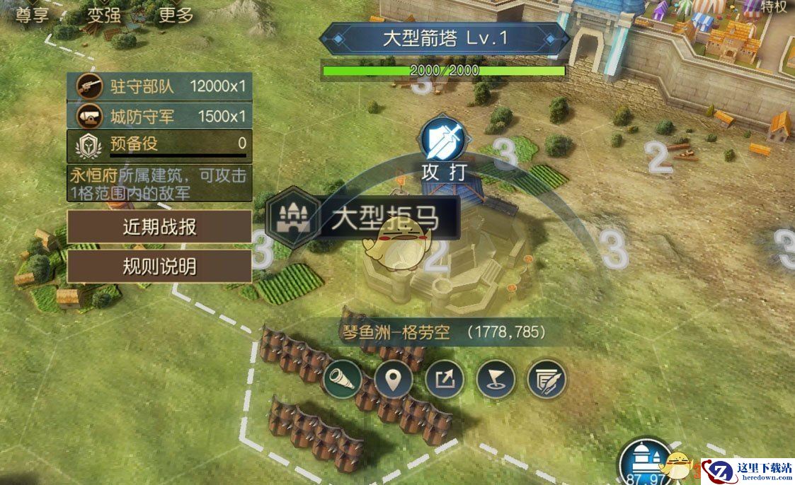 《征服与霸业》是一个典型的地格占领SLG,敌对联盟想要侵攻,就必须一块一块地啃下连接地块。除了在敌人的必经之路上建造拒马和箭塔以外,还可以通过卡地等方法暂时阻止敌人的前进步伐。