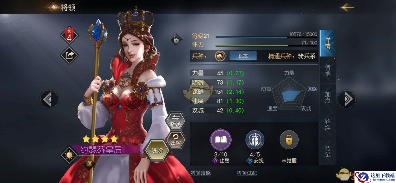其中谋略将的初始技能搭配为安抚或者雄辩,之所以不选择包扎,是因为包扎的治疗覆盖小,且容易溢出,泛用性不高。而安抚相对于雄辩的优先级更高,前期治疗技能可以有效减少士兵折损数量,除非你抽到了拿破仑这种强力的谋略输出,否则不推荐带雄辩。
