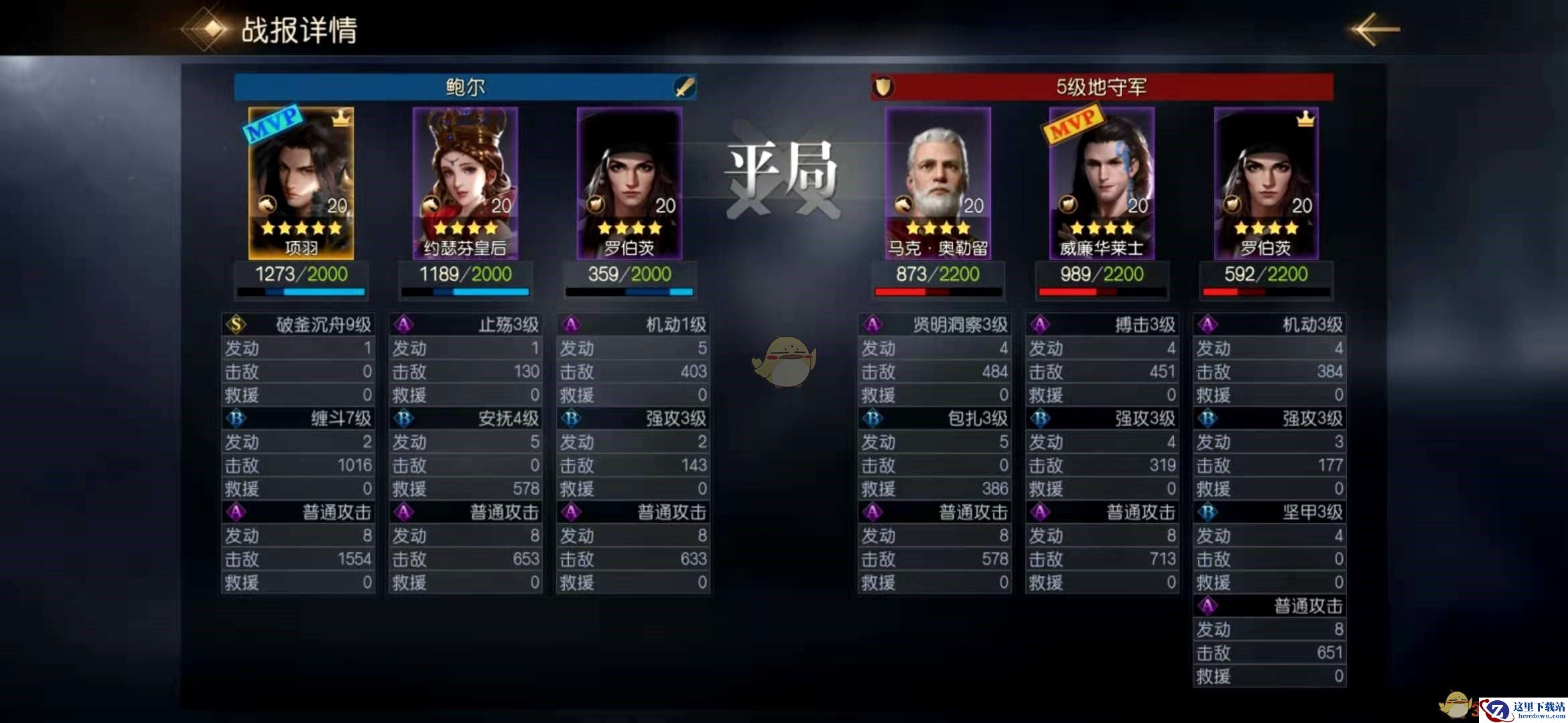 图中项羽的缠斗触发2次打1000伤害,如果全部触发,相当于4回合直接下掉5级地3分之1守军,这还只是7级缠斗,作为一个普通技能,收益相当爆表。