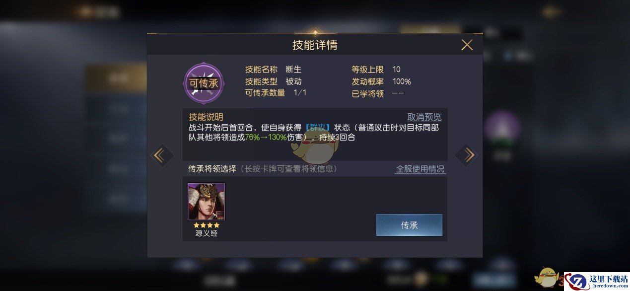 源义经的断生就牛逼很多,100%触发3回合增幅群攻,360%X3=1080%固定伤害,无论是伤害率还是输出效率都超越缠斗,有的话无脑传承就完事了。