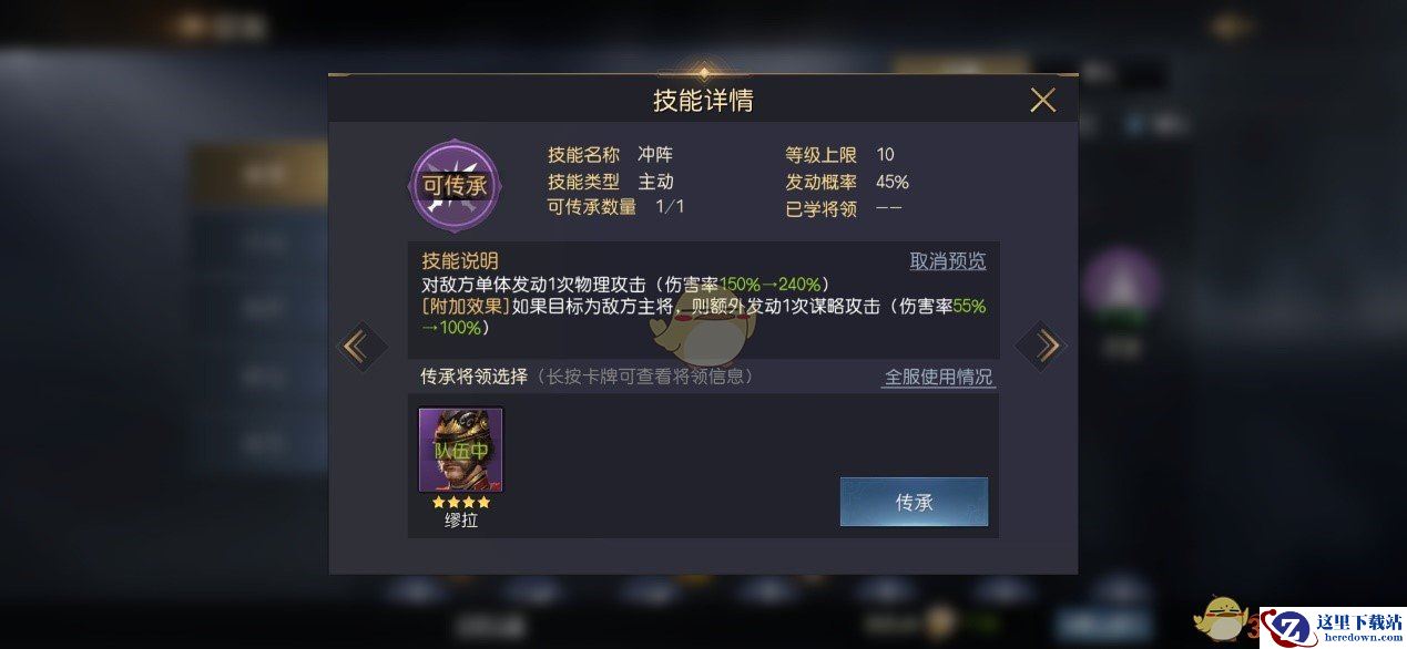而像冲阵这种,看似每回合打主将有340%倍率,但触发几率低于50%且有附加条件的赌博主动技能,并不适合开地使用,一旦触发不当或者打歪,就会有翻车的危险。如果不是收益远超其他普通技能,那么缠斗这个主动本身也是不推荐带的。