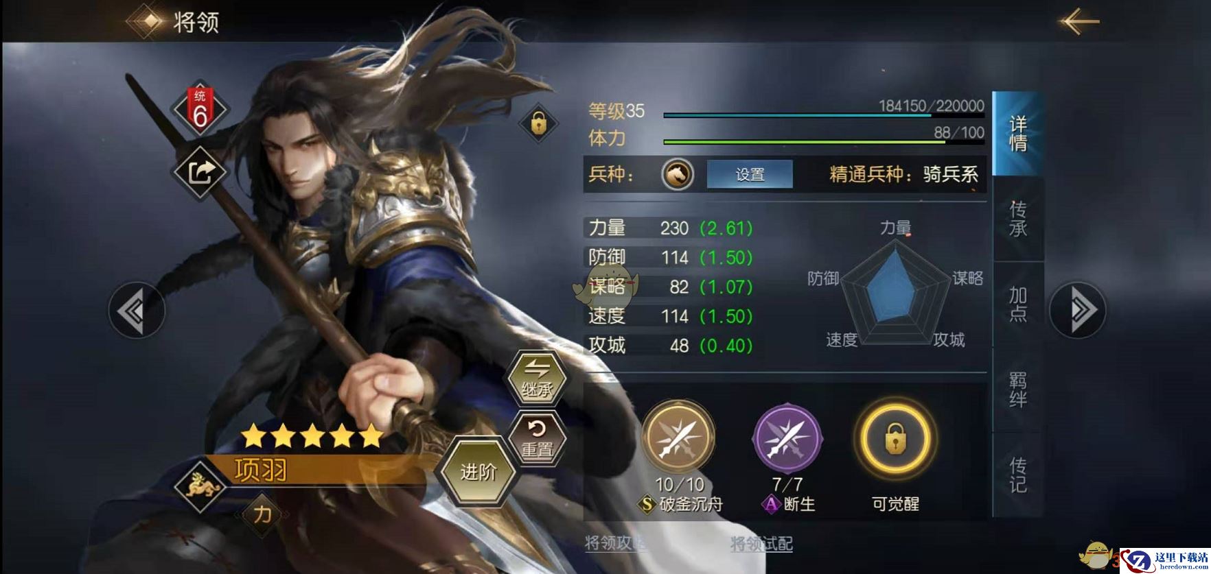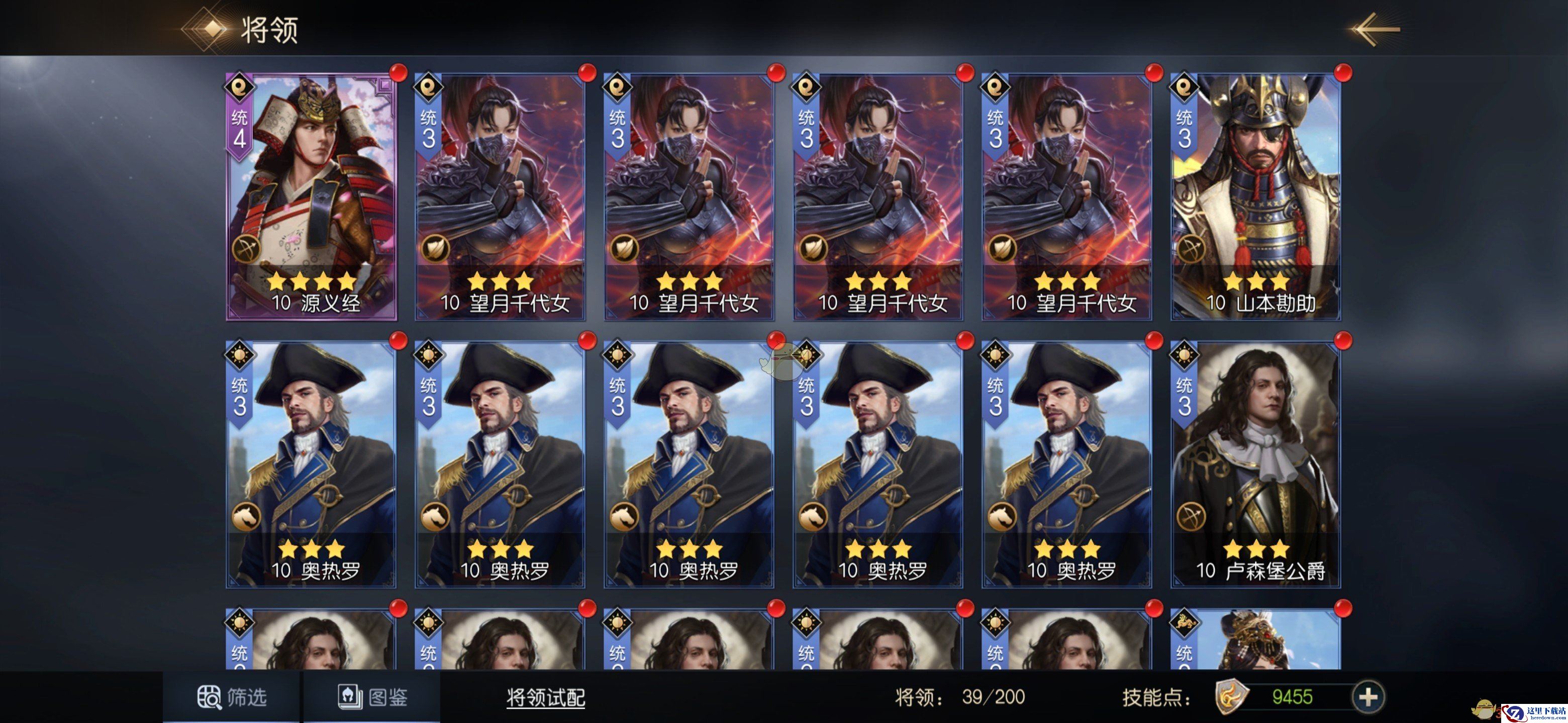 首先,绝对不要乱吃紫将!因为《征服与霸业》的传说技能和稀有技能的进阶,都需要消耗紫将,所以要为优秀的传承技能提前留好狗粮。具体哪些技能值得培养,我会在后篇进行补充。而蓝将则可以转化为技能点,用于技能的升级。