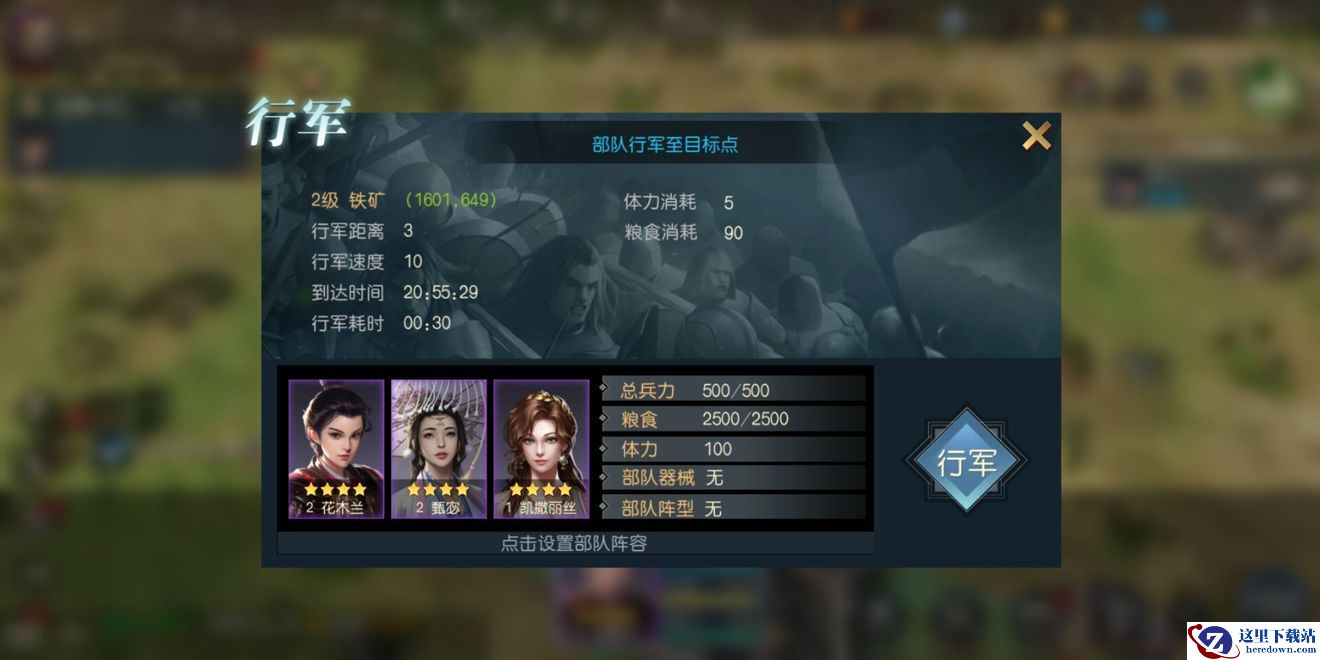 4、部队行军消耗。部队在野外行军的过程中也是会消耗一定量的粮食的,这个消耗量与行军距离有关,路程越远则消耗的粮食越多,但不是和地块的个数成正比,具体的消耗量可以在指定行军部队时查看。