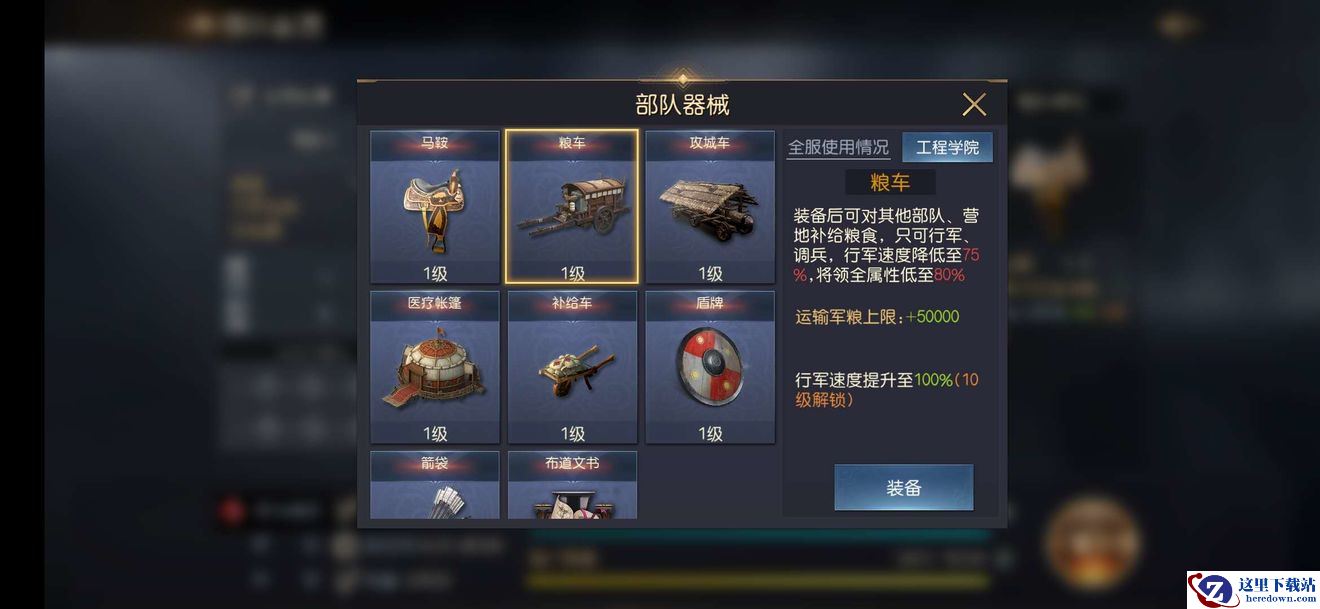 首先需要在城建中开启工程学院,然后在工程学院中建造粮车,运送粮车的部队只能进行行军和调兵操作,无法攻占土地和城池,且行军速度会下降到75%(10级时可以提升至100%),不同等级的粮车可携带的最大粮食量是不同的。