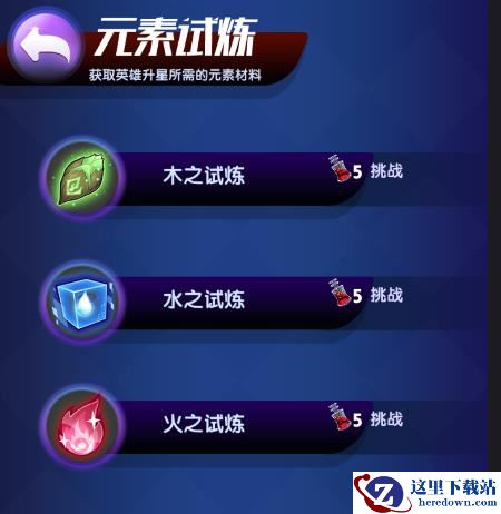 4、每个副本只限对应元素的英雄参加,比如木之试炼只有木元素英雄才可以进入