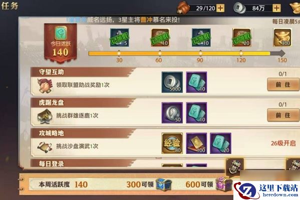 登录签到福利:1576元宝、3高级求贤令、张宝军师。