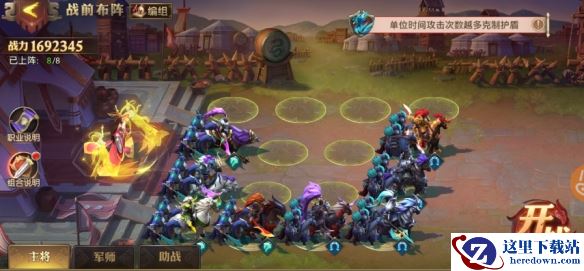 三轻骑和四重骑搭配董卓组成,阵容整体机动能力强,爆发性强,擅长切入敌方后排瓦解敌方阵容,重骑可以轻易打破盾兵的阵型。