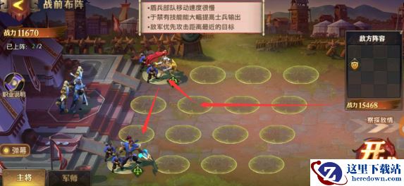 牵制篇过关非常简单,只需要根据布局提示排好布局,也就是将两位主将放置在做左侧一列,分别是上下位置。