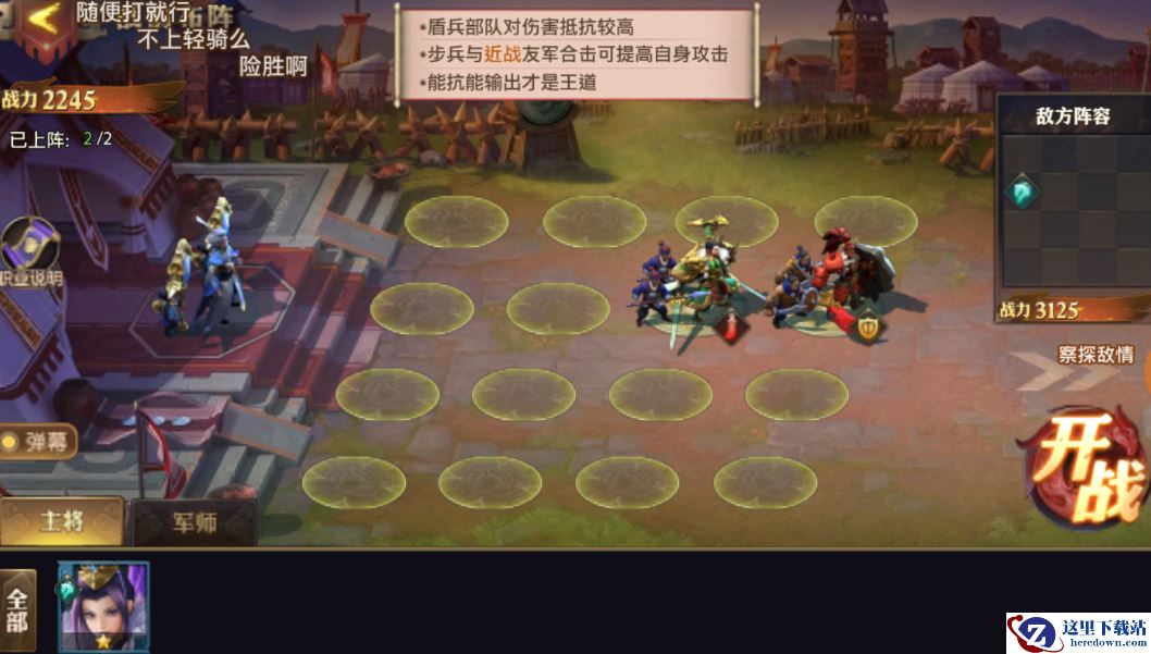 近战篇的方法和疾攻篇玩法一样,也是非常简单,使用盾兵和步兵搭配,然后注意步兵和近战友军合击可提高自身攻击,也就是说,步兵和近战友军打一个人的时候,可以提升攻击。