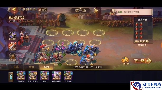 第二场通关张郃也很不错,前面盾兵抗住,后面弓手快速杀伤通关。