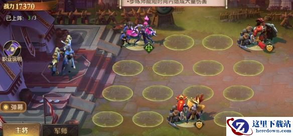 所以我们只需要像如下图这样将己方张梁放在离敌人最远的地方,先让己方未解锁技能的盾兵抗住伤害,在我方步练师放技能之前,张梁正好遭遇敌方盾兵并释放诅咒。可以成功使得诅咒的额外伤害最大化,从而轻松通关。