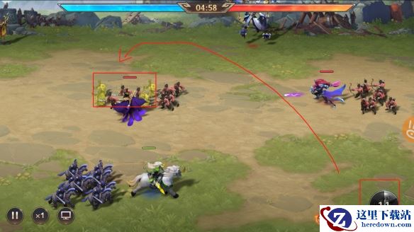 本章跟之前有一定的区别,我们初始只有一名轻骑马超,马超可以给敌人的后排部队造成成吨的伤害,快速击杀敌人后排。但是本章中敌方前排有一名补兵,如果正常开战的话马超会被对方的步兵拦住去路,无法攻击到敌方后排。这个时候我们就需要使用本局中可以使用的计谋“撒豆成兵”。在开局的时候立刻使用改计谋在敌方补兵的面前召唤4个黄巾力士,这样敌方的步兵会被凭空出现的召唤物吸引到仇恨。我方马超就可以长驱直入,直捣黄龙。