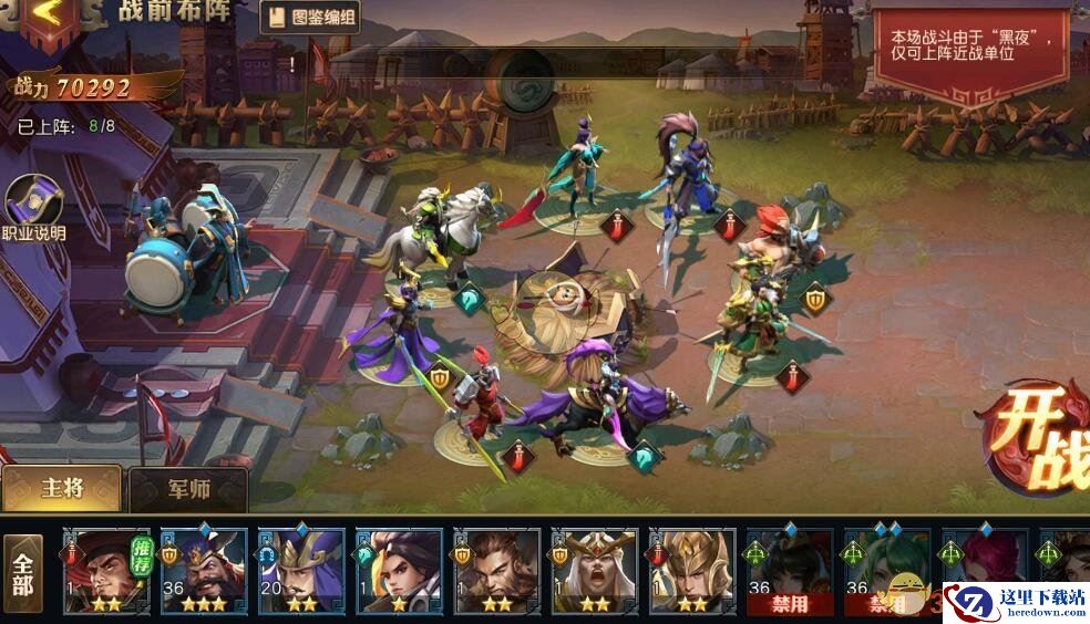 二、长坂坡之战每日有2次挑战机会,点击挑战进入布阵界面,根据少年不同的等级情况,系统会提示可上阵的人数,【长坂坡之战】是夜间战斗,所以只能有近战位的主将上阵哦。