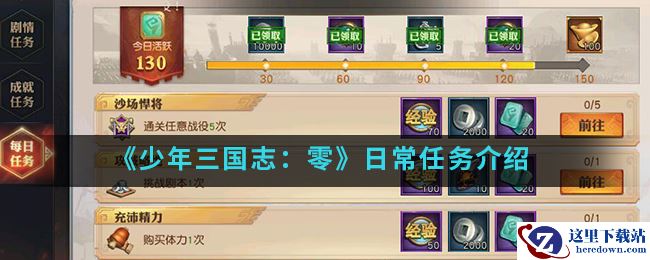 以上就是小编整理的少年三国志零日常任务介绍,想知道更多相关资讯攻略的请关注手游网。
