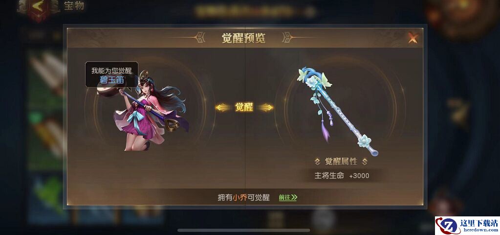 2、获得相应主将才可以觉醒宝物,觉醒宝物后可提升主将攻击力。