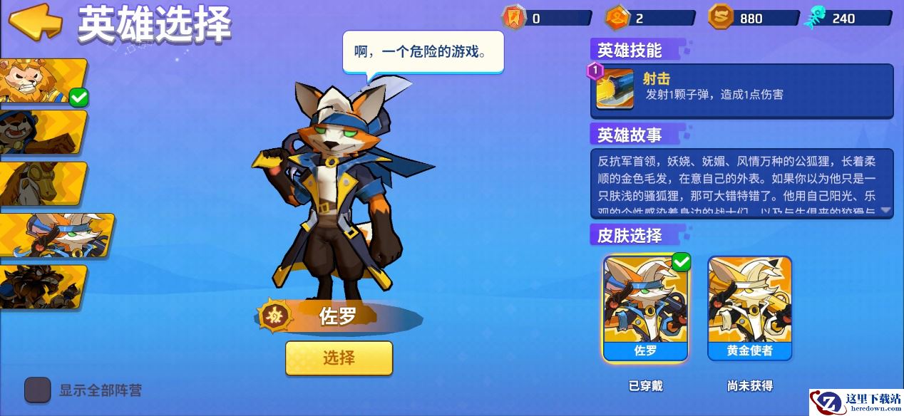 佐罗非常适合团队作战,远程的优势可以让佐罗前期就与敌人拉开距离,并有余力牵制对手,召唤反抗军后以低攻高血的反抗军士兵为核心,配合治疗、增幅等手段,让反抗军随从可以在承受一定伤害之后养成高攻大哥。