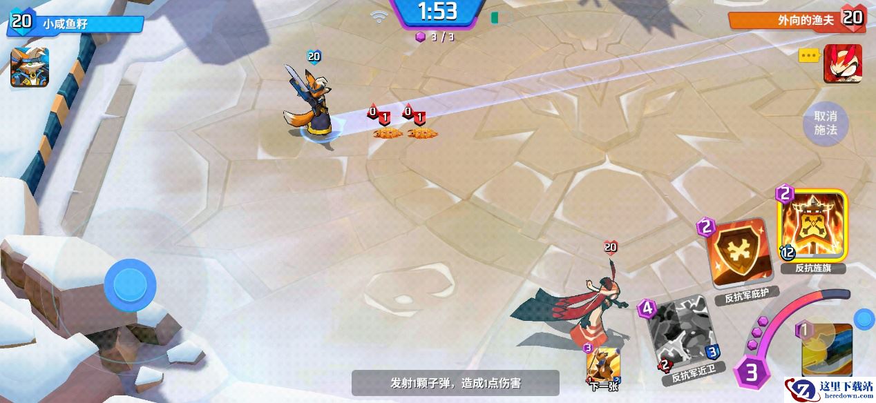英雄技能“射击”是消耗一费的非指向性技能,发射一颗子弹命中后造成一点伤害,效果表现上等于是永久在手的1费1伤害火球术,可被预判弹道走位与障碍物阻挡。