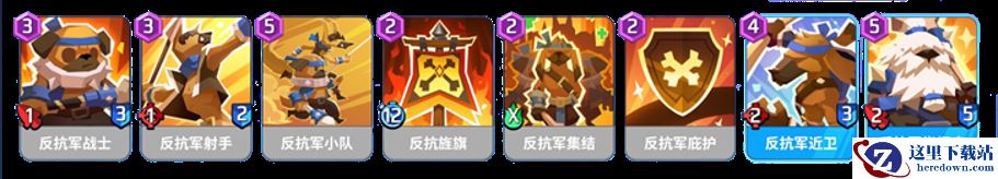 反抗军士兵费用低廉,反抗军战士与射手只需要两费和三费,前期配合2费的反抗旌旗,只要五费左右拉出一只身材不错的随从,如果对方没有及时有效处理,反而会提升其攻击力,一旦遇到叠加更多力量,反抗军的力量对方就几乎无法对抗了。