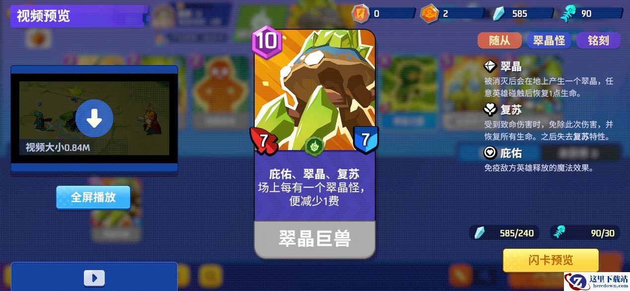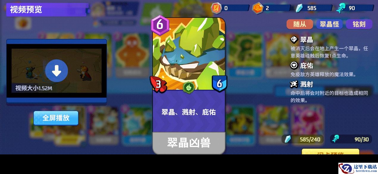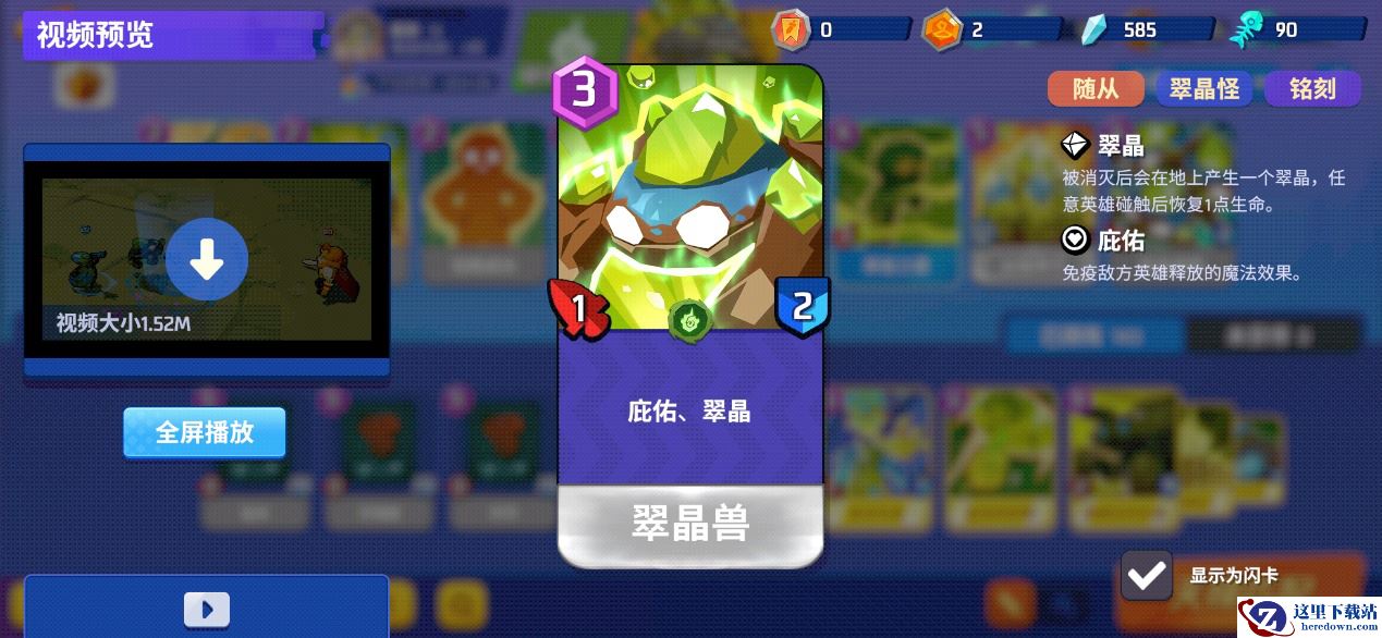 「翠晶兽」的热启动费用为3、铺场费用为6,节奏很亏,而且身板只有1-2。打低费快攻随从时非常不适合单个裸放,换费血亏,进阶版的翠晶凶兽和翠晶巨兽同样有这个毛病。