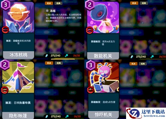 2、当使用机关卡时,会在指定位置召唤一个机关,敌方单位踩中即可触发,同理如果不踩中,那就是浪费了。
