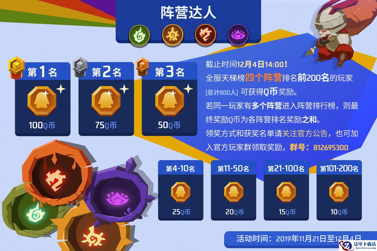 截止时间12月4日14:00,全服天梯榜四个阵营排名前200名的玩家,共计800名玩家,可获得Q币奖励,若同一玩家有多个阵营进入阵营排行榜,则最终奖励Q币为各阵营排名奖励之和。