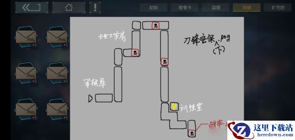 第五章,战车下。地图手稿金盾对应关卡5-9,眼睛标记在房间2中,打破获得隐藏支线s3。