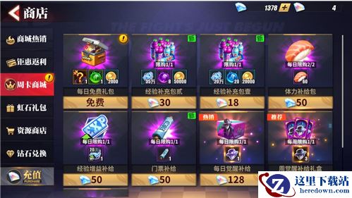 在周卡商城中有体力补给包,购买一次需要50钻石,每天限购两次。