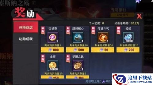 格斗家通过参与索斯纳之殇获得的梦魇碎片,可以在奖励商店中兑换街机币、经验、斗气和梦魇之匙等资源。