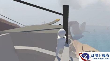 到达此处后靠岸,利用爬墙技巧爬上高地。