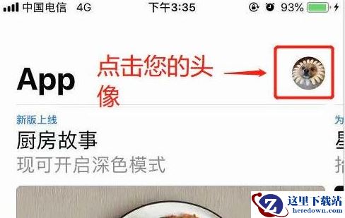 步骤1:进入Apple Store,点击右上角自己的头像。