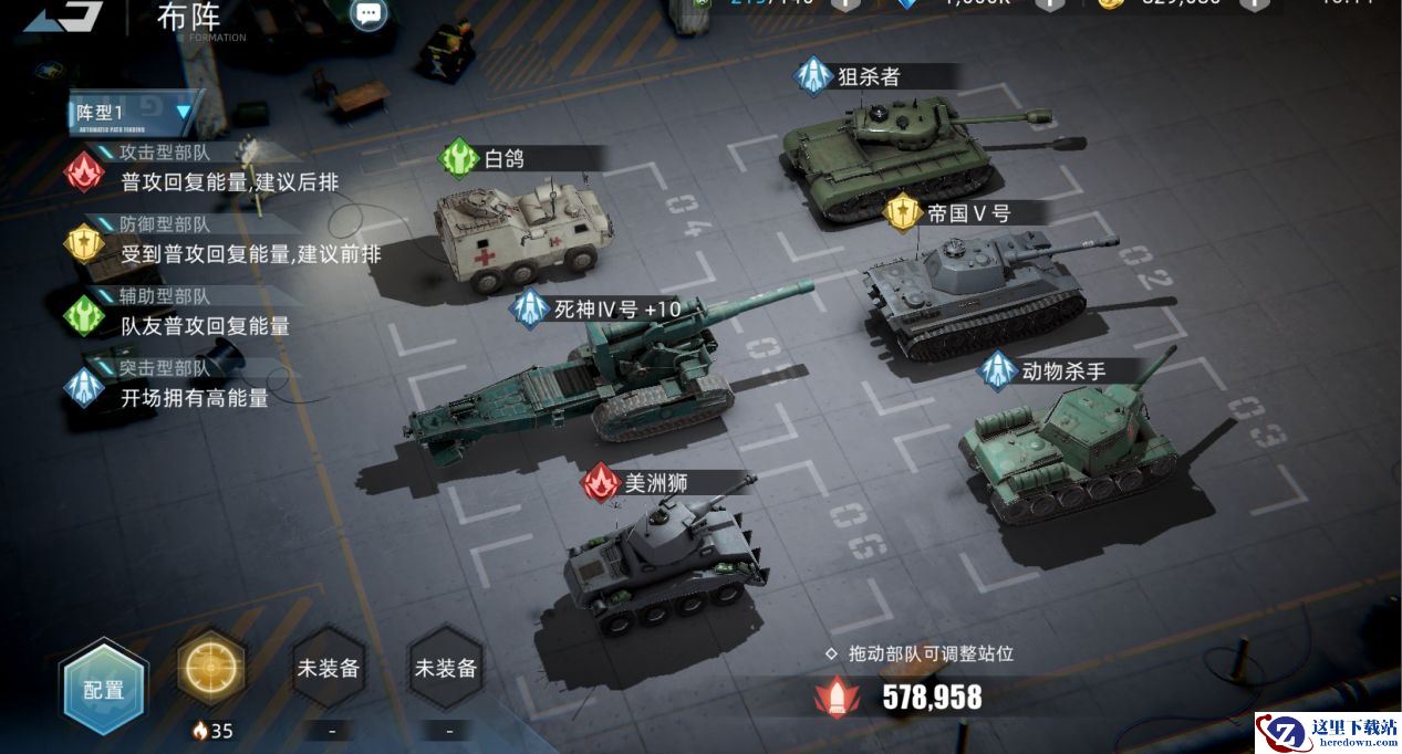 银狐、斑马火炮、床垫火炮这三只部队则是为死神Ⅳ号和狙杀者补足伤害,务求一击制敌,让地方部队丧失输出能力。银狐主动技能【坦克重炮】是对敌方后排造成AOE穿甲伤害,而斑马火炮主动技能【高爆火力】同样是单体点杀,最后由床垫火炮的【齐射火炮】进行收尾工作。