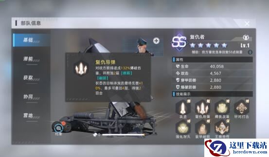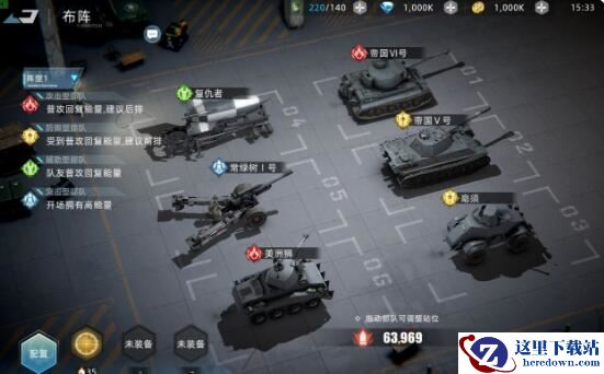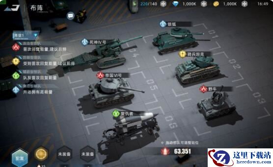1、以帝国Ⅵ号+复仇者两款G系部队来搭建该阵容的核心,帝国Ⅵ号有着强力的单排AOE技能,特别是5星后解锁技能【伪装战术】后,更是攻防兼备;而复仇者则是攻击地方后排,与帝国Ⅵ号攻击范围互补,并且附带【削弱】效果,双双搭配爆发惊人。