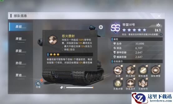 小贴士:除了部队本身的强力技能和优势互补外,更重要的是相互的协同关系搭配。帝国Ⅵ号+复仇者同时上阵会有增伤效果和附加技能,毫须+常绿树Ⅰ号同时在场可以增加免伤和回复,美洲狮+帝国Ⅴ号是免伤和能量回复。