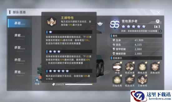 3、雪地漫步者和狂怒则需负责队伍的前排,除了承担伤害外,还需要提供一些输出能力。战地医疗队则是整个队伍的回复单位,可以对我方血量最低单位进行大量生命值回复。