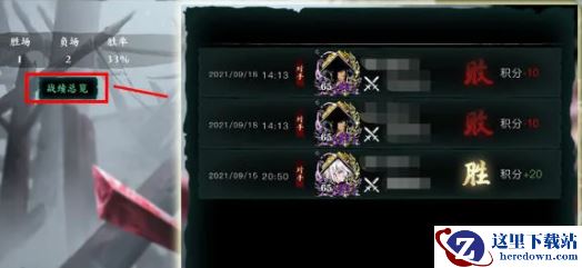 论剑界面左侧的[战绩总览]可查看当前论剑的胜负信息,点击玩家头像可查看角色信息。