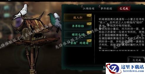 玩家其他角色中任意一位达到55级及以上,然后可以去邮件鸽子那里找,之后去谢园做任务