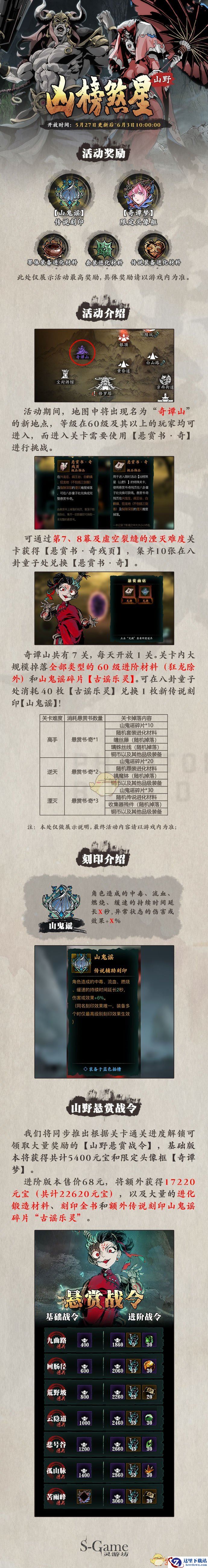 无论如何,这都是值得一探之地,除了限定头像框外,限时获得的蓝色辅助传说刻印”山鬼谣“——能够使得对敌人造成的负面状态时长延长,这种效果若与灭法司系列结合,又会有何等奇效?