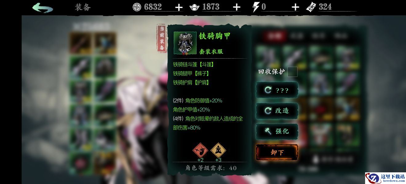 首先是可以打出40级套装,铁骑套装,效果如下