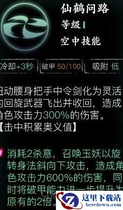 当解锁【仙鹤问路】时,可以替换之前技能链上的白鹭斩