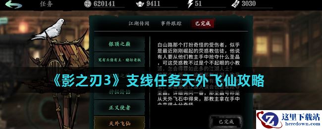 《影之刃3》游戏中支线任务天外飞仙怎么完成?游戏中除了主线任务之外还有很多支线任务,而且很多支线任务的奖励还是非常丰厚的,其中支线任务天外飞仙很多玩家表示不知道怎么做,那么接下来小编为大家带来《影之刃3》支线任务天外飞仙攻略,一起来看看吧。
