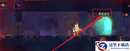 1、进入游戏后,先来到雾萦港湾关卡,从如图所示的大门进入。