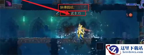 4、就会掉落武士刀图纸,将图纸捡起来,就可以获得武士刀了。