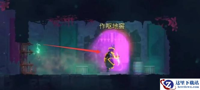 2、到达作呕地窖后,使用武器将如图所示的肿胀眼魔怪物给消灭掉,一共需要消灭它三次。