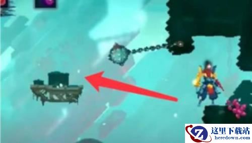 达到平台之后我们需要一直往上走,但是要注意墙上的刺和下方的岩浆。