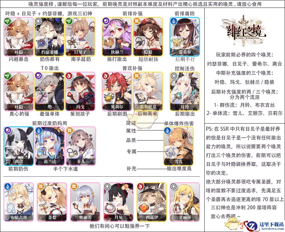 日见子作为SSR,不,是全游戏最大奶的唤灵,也是一个顶级的大后期,但因为SSR材料胃口很大,所以前期用其他小奶量的唤灵就可以了,但后期有能力就必须考虑是日见子了,哦,被动请无视,日见子能不死就不要死。