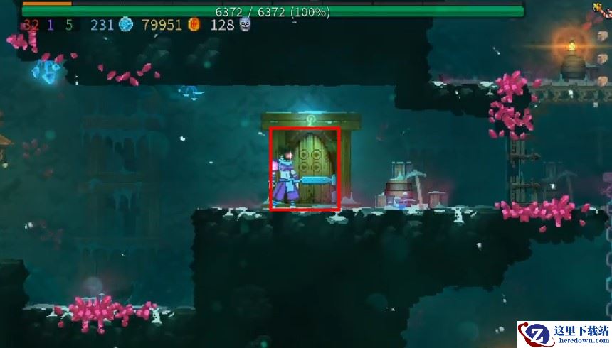 玩家进入四细胞门之后,可以看到一个被锁住的门,这个门需要使用花环钥匙解锁。